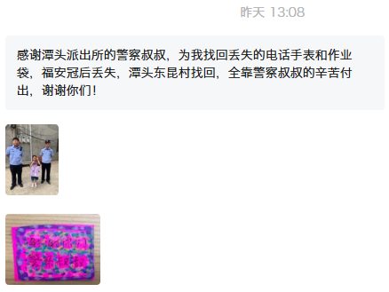 “感谢潭头派出所的警察叔叔