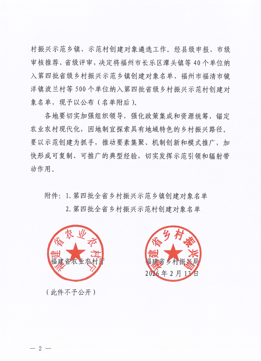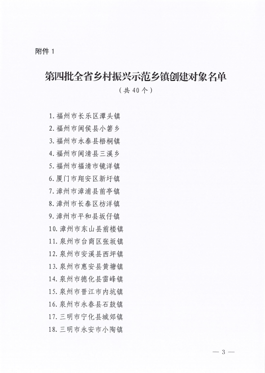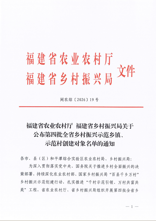 根据《农业农村厅 福建省乡村振兴局关于公布第四批全省乡村振兴示范乡镇、示范村创建对象名单的通知》(