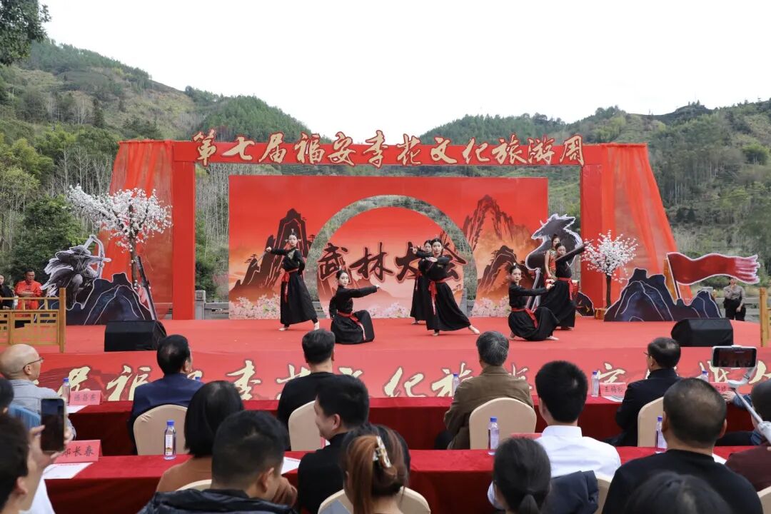 活动在开场舞《侠客行》中拉开帷幕。随后,畲族武术《畲风武韵》《扇扑彩蝶》《情定武陵花海》《踏春寻李》以及歌舞《潭头·李花乐》等节目轮番登场,展现潭头深厚的文化底蕴与浓郁的乡土情怀。
