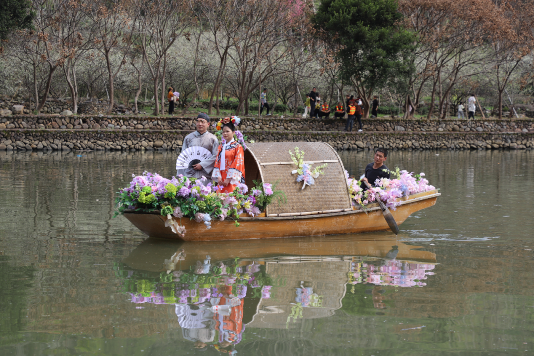 作为活动特色亮点,沉浸式水上武侠情景剧《武陵群侠传》成为全场焦点。情景剧以泛舟武陵溪的形式,演绎《天龙八部》《射雕英雄传》等经典武侠篇章,将江湖故事与溪光花影深度融合,带来别样视觉盛宴。现场还设置武林英雄帖互动、《百年回眸》文旅沉浸式体验,同步开放棠溪江湖妆造局、武侠打卡点、李花集市,开展本土文创与潭头农特产品美食推介展示,游客可体验武侠妆造、打卡合影、逛集市品特色,全方位感受赏李花、遇江湖、品风情的乐趣。