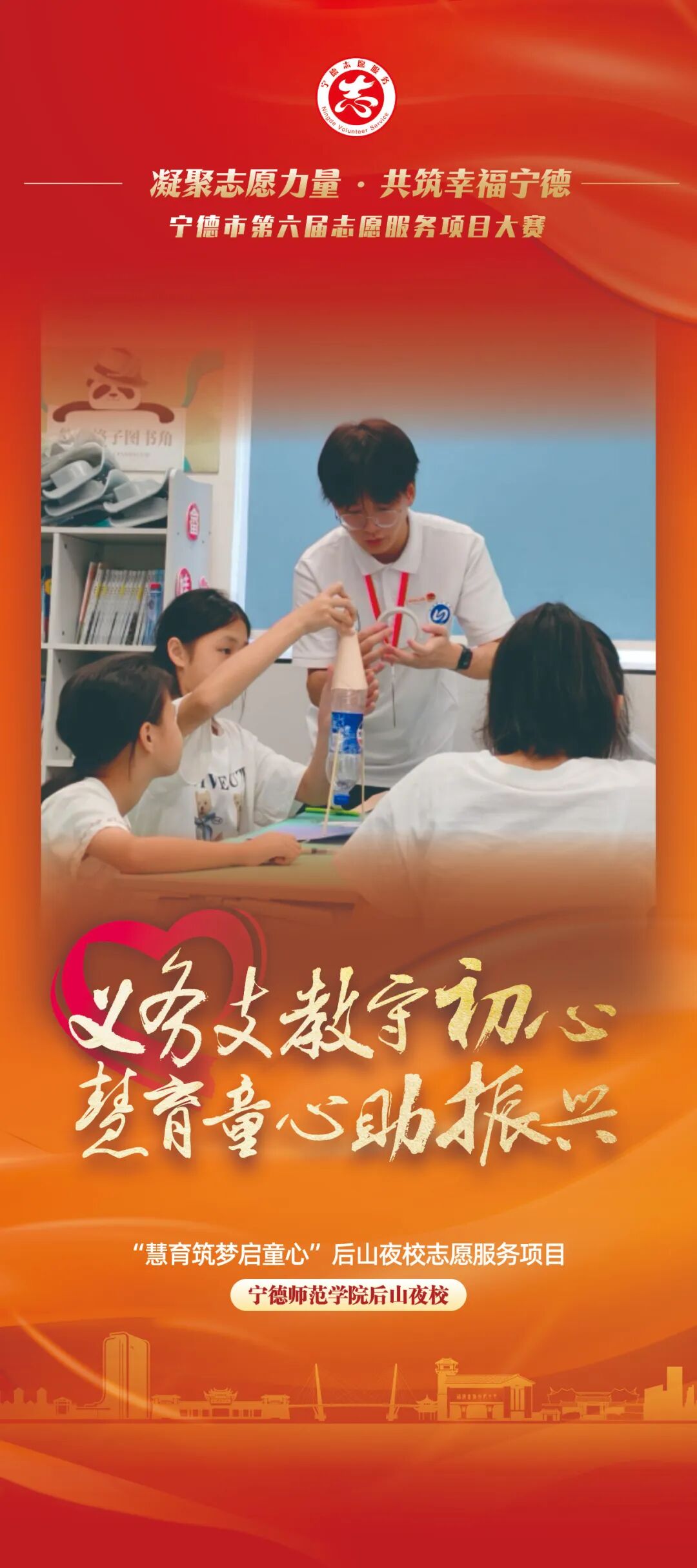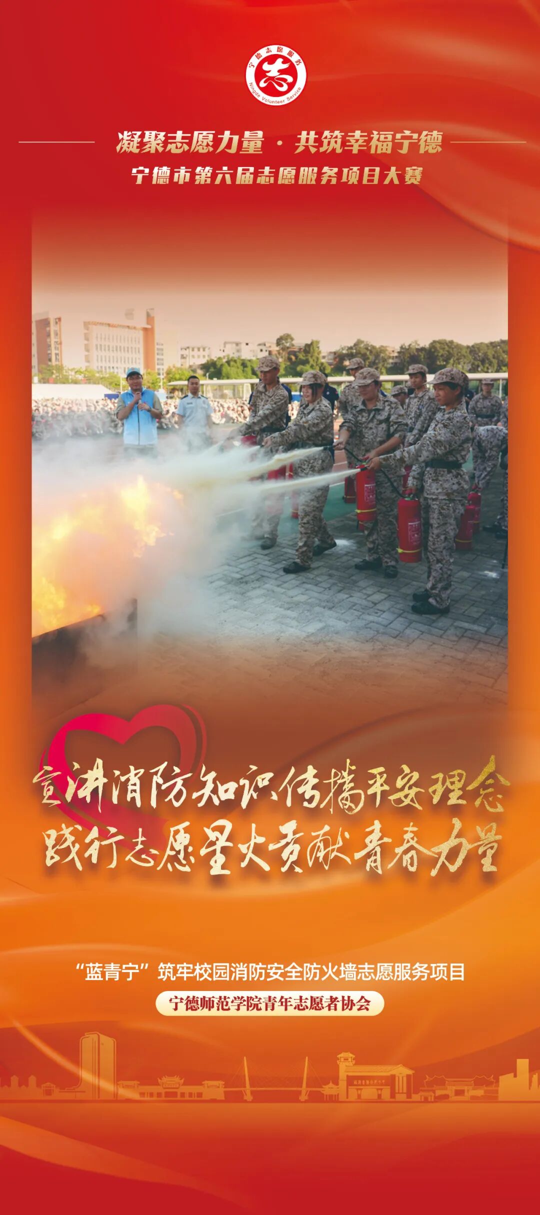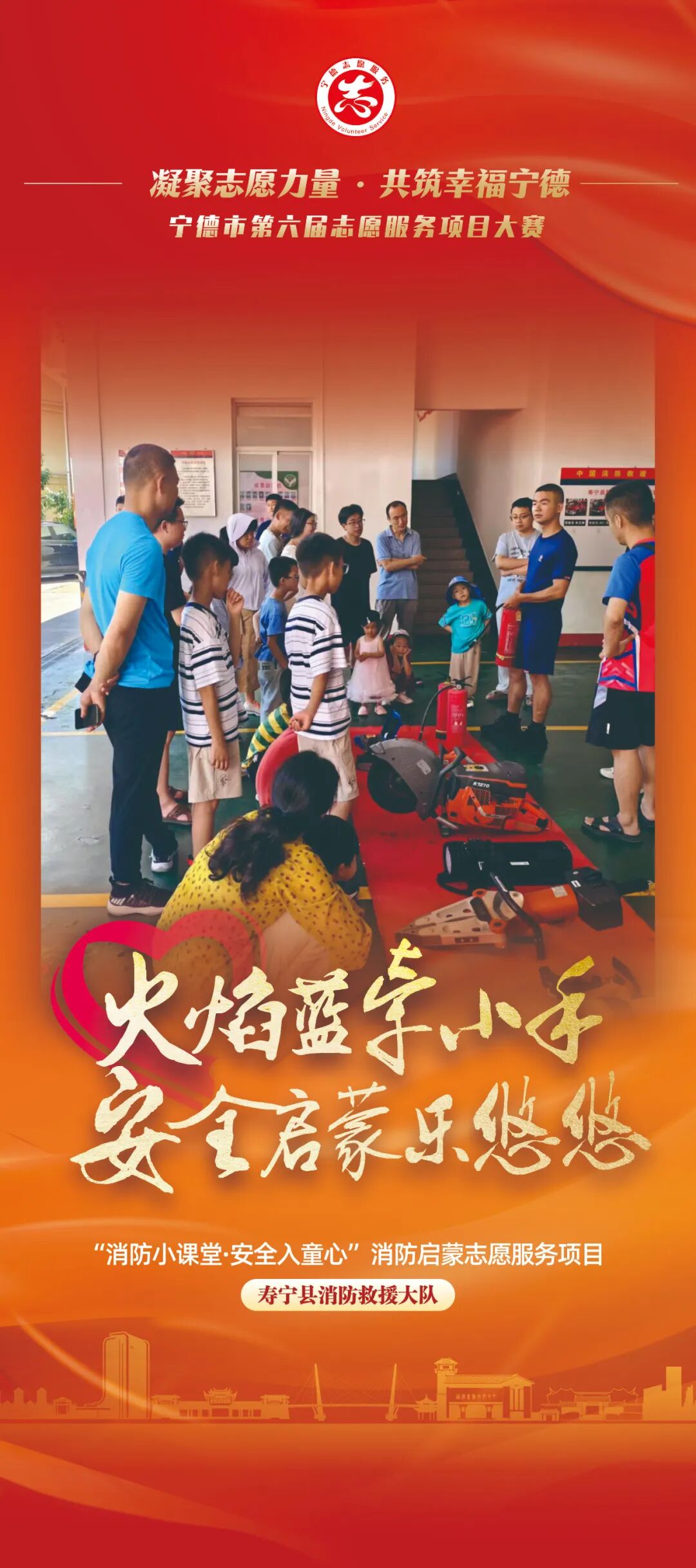 近日,由中共宁德市委社会工作部、中共宁德市委宣传部(文明办)、共青团宁德市委、宁德市妇女联合会、宁德市科学技术协会联合主办,中共福安市委社会工作部承办的“凝聚志愿力量 共筑幸福宁德”宁德市第六届志愿服务项目大赛即将开赛!值此决赛开启之际,大赛组委会陆续对40个入围决赛志愿服务项目进行宣传展播。本期,我们展播的是“消防小课堂・安全入童心”消防启蒙志愿服务项目、 “爱心树”公益行志愿服务项目、周宁县“守护勇士”志愿服务项目、“慧育筑梦启童心”后山夜校志愿服务项目、“蓝青宁”筑牢校园消防安全防火墙志愿服务项目。