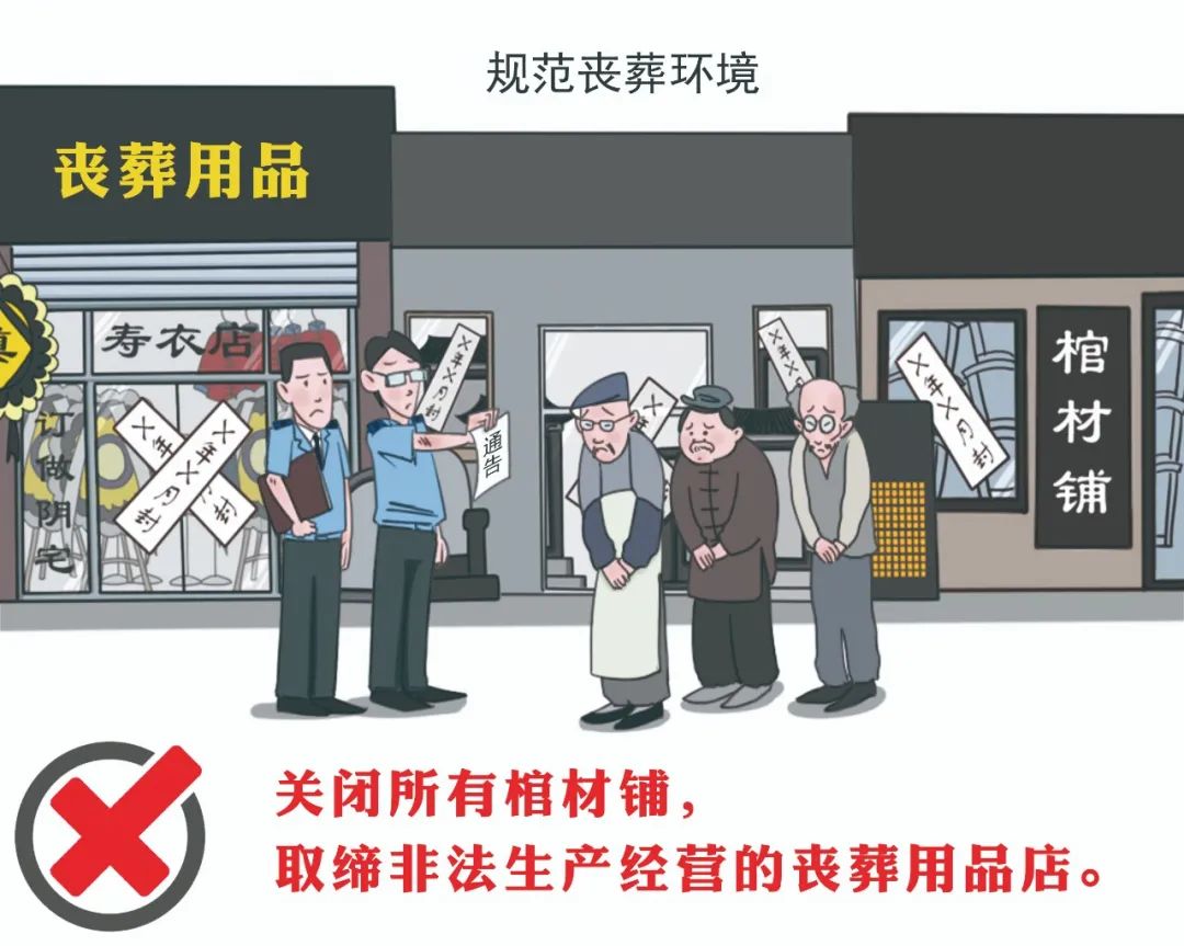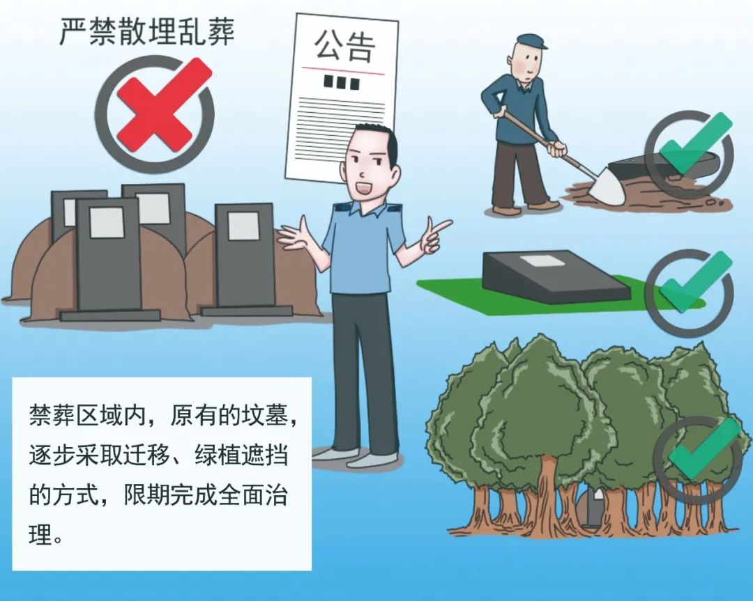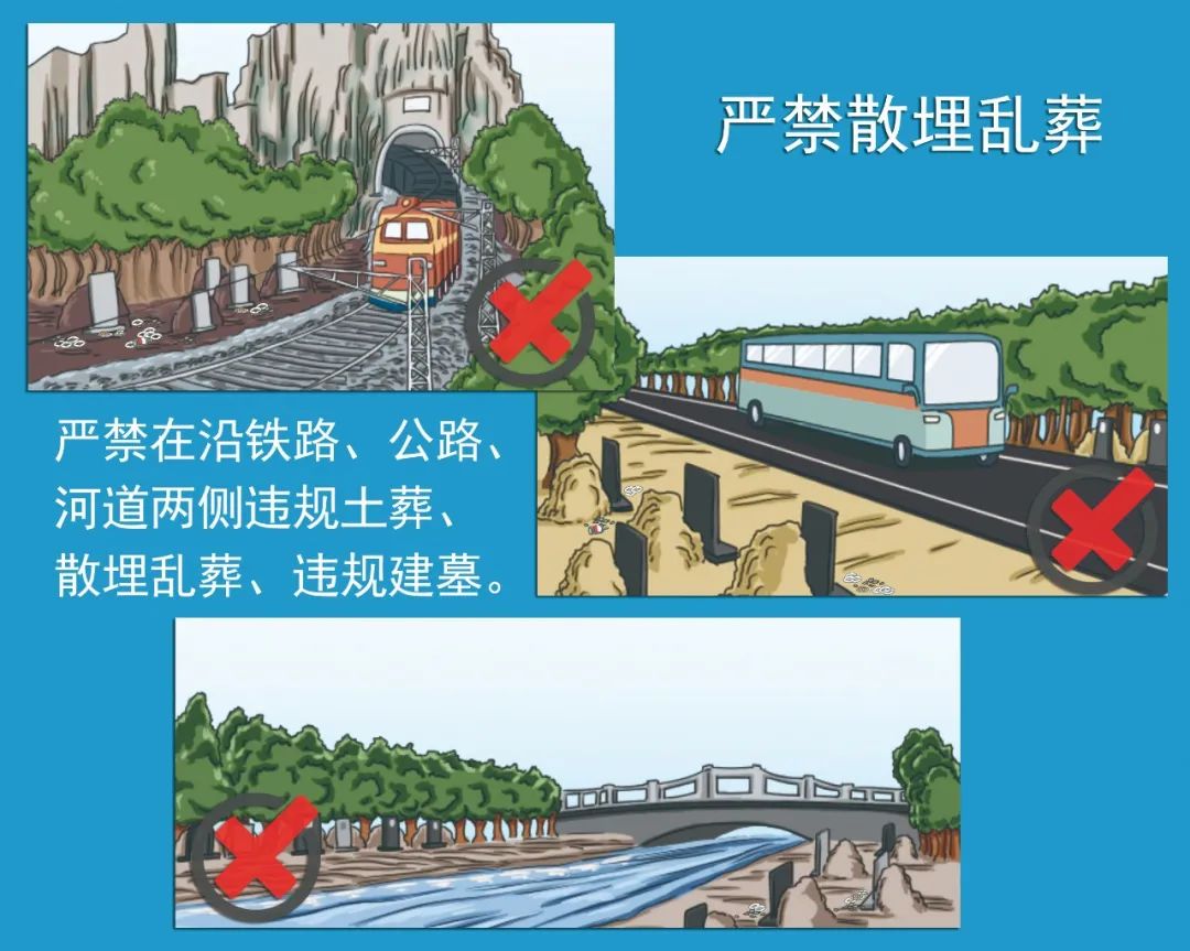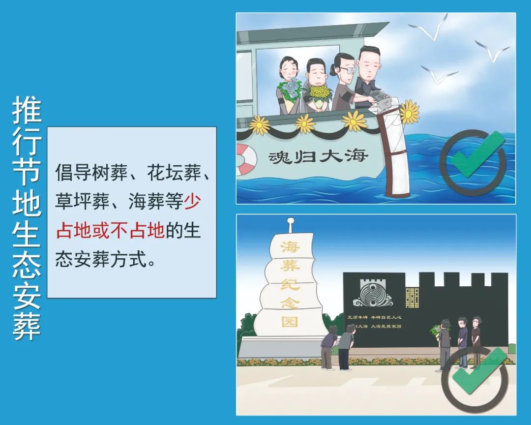 《殡葬管理条例》第二条 殡葬管理的方针是:积极地、有步骤地实行火葬,改革土葬,节约殡葬用地,革除丧葬陋俗,提倡文明节俭办丧事。