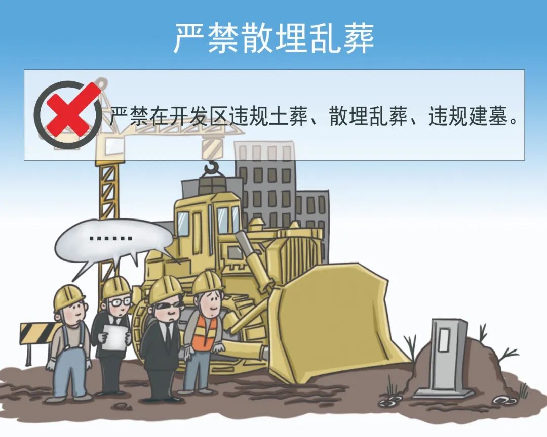 《殡葬管理条例》第十条 禁止在下列地区建造坟墓:(一)耕地、林地;(二)城市公园、风景名胜区和文物保护区;(三)水库及河流堤坝附近和水源保护区;(四)铁路、公路主干线两侧。