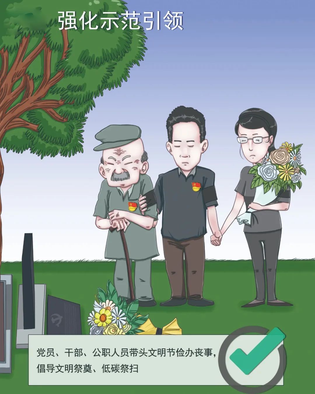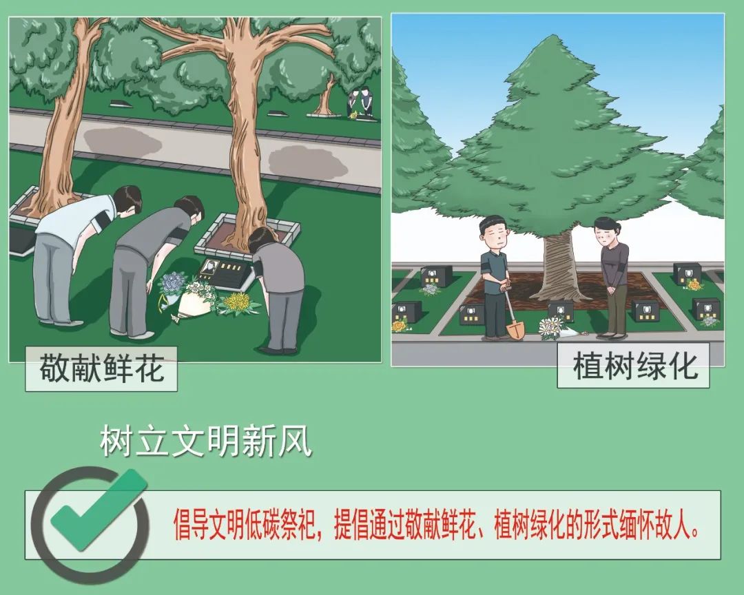 (三)带头文明低碳祭扫,传承先进文化。党员、干部应当带头文明祭奠、低碳祭扫,主动采用敬献鲜花、植树绿化、踏青遥祭、经典诵读等方式缅怀故人,弘扬慎终追远等优秀传统文化,不得在林区、景区等禁火区域焚烧纸钱、燃放鞭炮。积极参与社区公祭、集体共祭、网络祭扫等现代追思活动,带头祭扫先烈,带领群众逐步从注重实地实物祭扫转移到以精神传承为主上来。