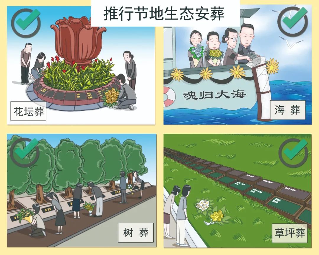 (二)带头火葬和生态安葬,保护生态环境。在人口稠密、耕地较少、交通方便的火葬区,党员、干部去世后必须实行火葬,不得将骨灰装棺再葬,不得超标准建墓立碑。党员、干部应当带头实行生态安葬,采取骨灰存放、树葬、花葬、草坪葬等节地葬法,积极参与骨灰撒散、海葬或者深埋、不留坟头。鼓励党员、干部去世后捐献器官或遗体。少数民族党员、干部去世后,尊重其民族习俗,按照有关规定予以安葬。