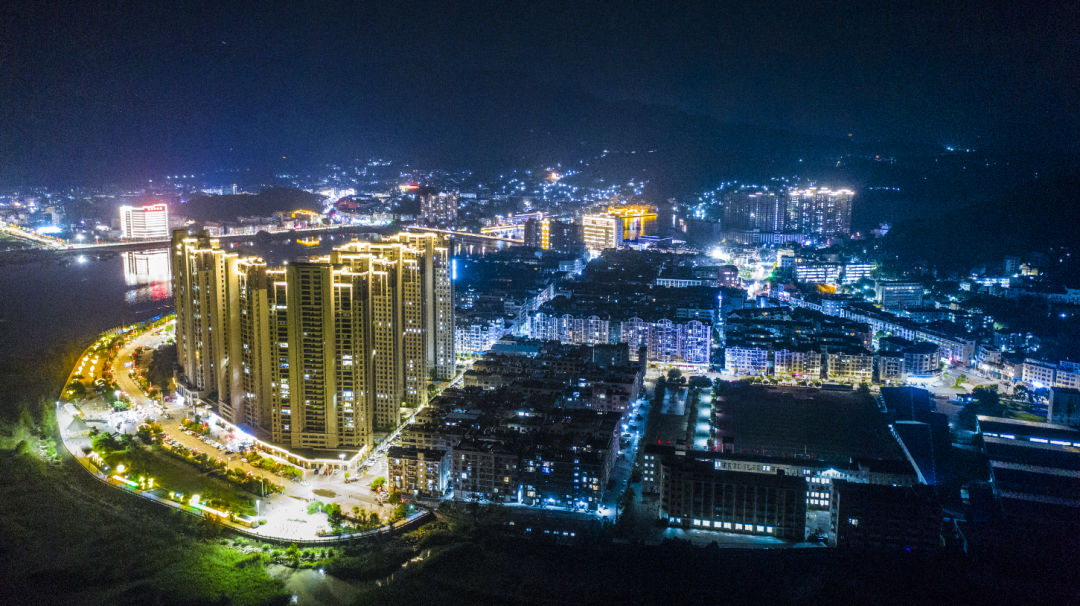 夜幕下,罗江街道流光溢彩(陈雅芳/摄)