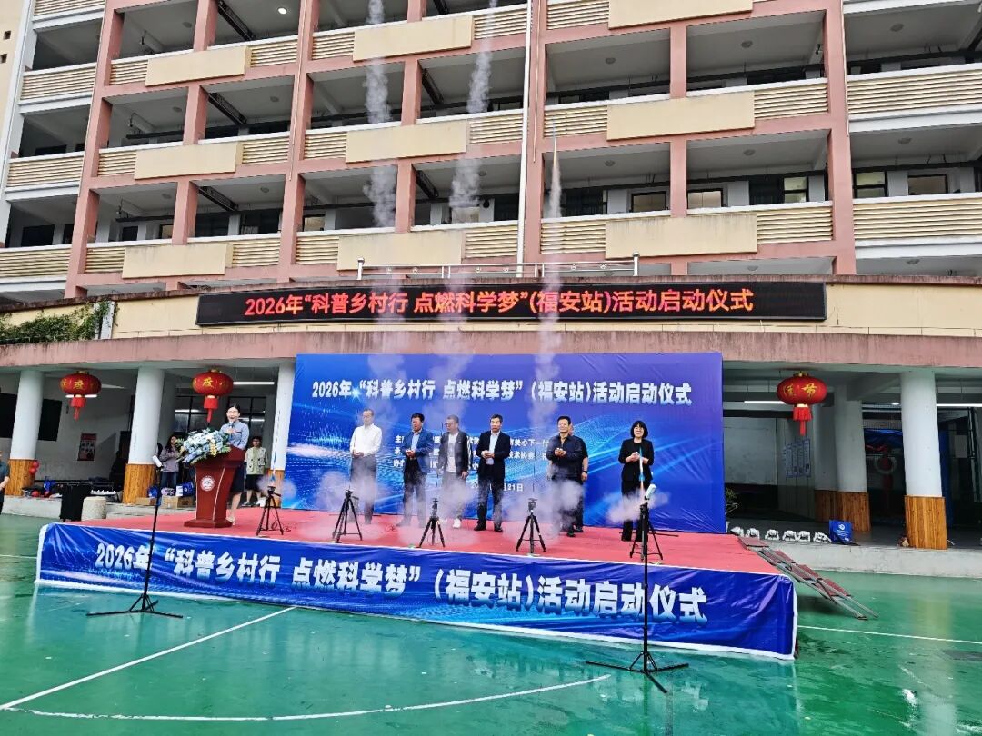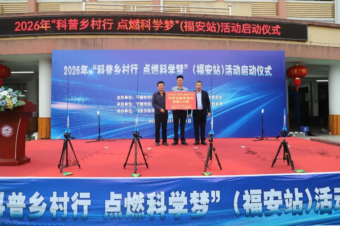 4月21日上午,由宁德市科学技术协会、宁德市关心下一代工作委员会主办,宁德市科技馆、福安市科协、福安市教育局承办的2026年“科普乡村行 点燃科学梦”首站活动在福安市穆阳中心小学拉开帷幕,为乡村孩子打造了一场融合科学探索与童趣体验的春日盛会。宁德市科协党组书记、主席王怀宇出席活动并致辞。启动仪式上,宁德市科协、宁德市关工委向学校捐赠了科学实验资源包,为孩子们打开了一扇通往奇妙科学世界的大门。