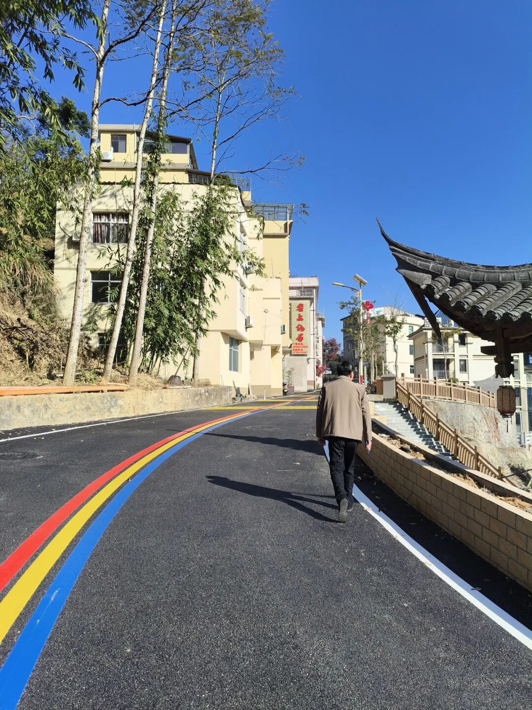 福安人把新春第一次出门叫“出行”,意即取个吉利方向,讨个“时运亨通”的彩头。 沿着新修建的福穆公路,向郊外进发,来到位于仙岫山东麓的纯少数民族村——仙岩村。沿着新修建的“彩虹路”漫步,仿佛踏入了一幅徐徐展开的山水画卷,家家户户窗明几净,家家户户贴“福”字,大红春联墨飘香。村中心的榕树公园广场挂着大红灯笼,寓意畲家人的日子一年比一年红火。