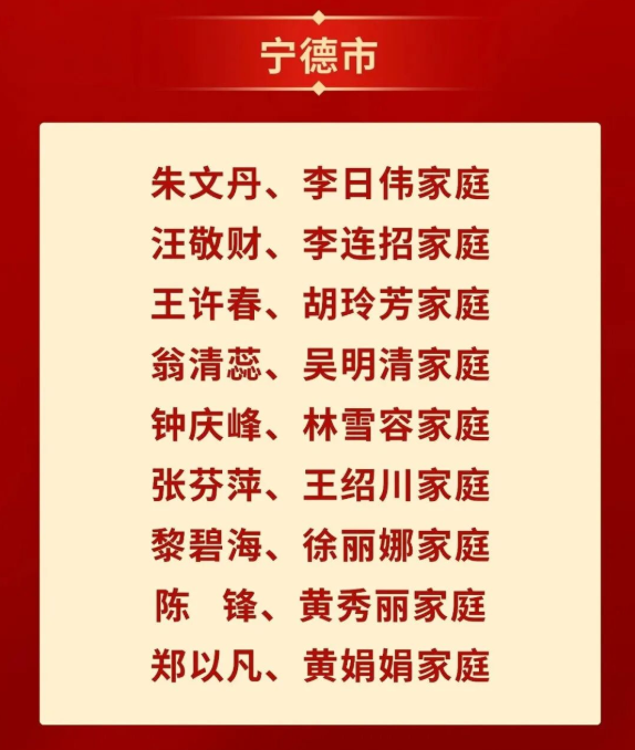 2025年10月,省委宣传部、省妇联联合开展2025年福建省“最美家庭”宣传选树活动,深入寻找那些默默发光、用行动诠释“爱国爱家、相亲相爱、向上向善、共建共享”的平凡典型,他们有一个共同的名字——“最美家庭”。