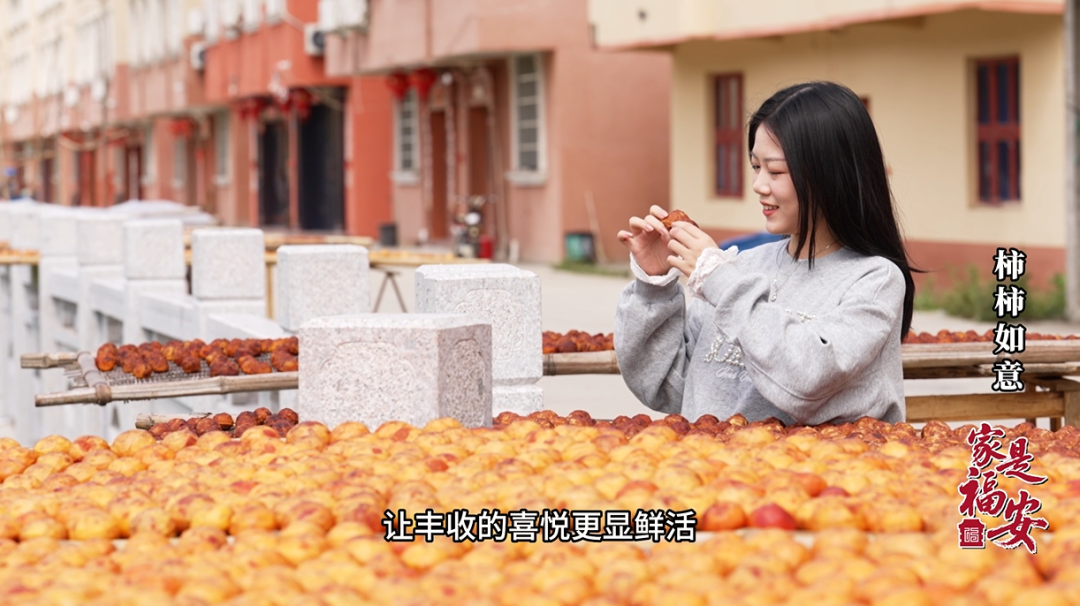 金风送爽,百亩柿林被点亮成一盏盏小灯笼,洋溢着“柿柿”如意的丰收欢欣。这份来自大自然的甜蜜,不仅挂满枝头,更在村民巧手中,化作沐柿子、软柿子、柿子饼,将秋天的味道珍藏。趁着晴好的天气,家家户户的院前早已热闹起来,村民们将刚采摘的柿子铺在竹匾里,橙红的果实顺着屋檐下的木架排成长队,阳光洒在果肉上,映得整个院落都暖融融的,晒柿的烟火气让丰收的喜悦更显鲜活。