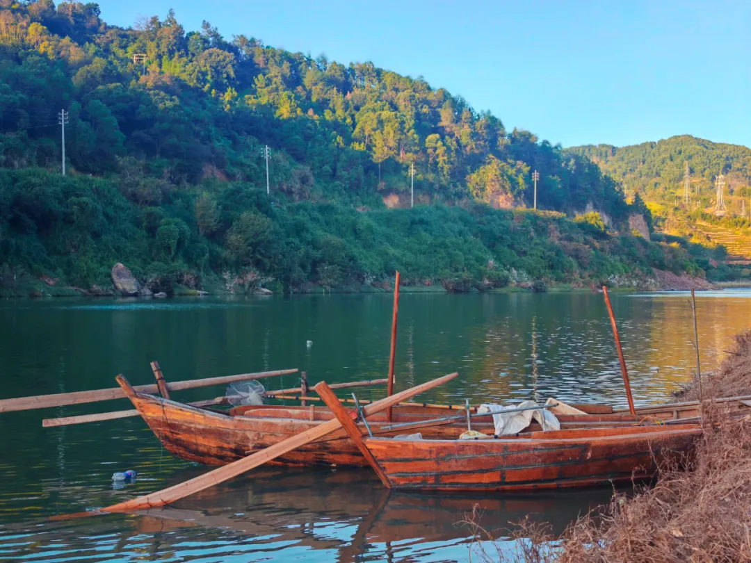 也不妨乘坐一叶扁舟,泛舟溪上