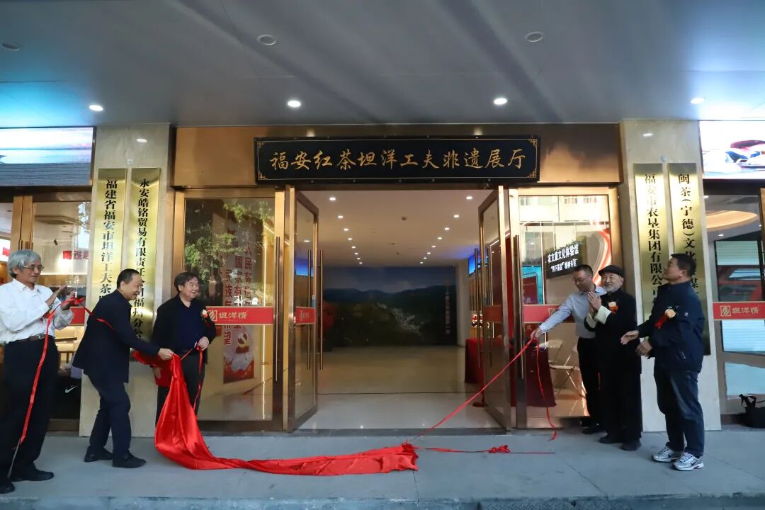 11月24日,坦洋工夫非遗展厅揭牌仪式在福州五一广场举行。福建省茶叶学会名誉会长冯廷佺、台湾茶叶学会理事长陈右人、台湾中华茶文化学会理事长范增平、福建省茶叶学会副会长林光华、福安市人大主任詹廷平、坦洋工夫非遗展厅主理人黄进聪,共同为福安红茶坦洋工夫非遗展厅揭牌。福安市副市长蓝和鸣主持。