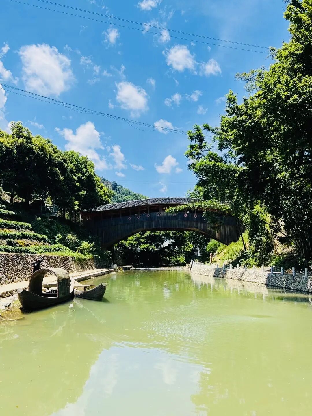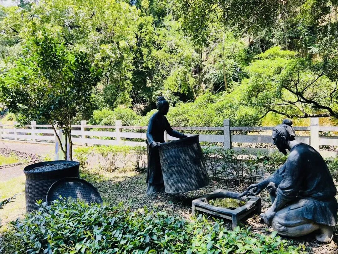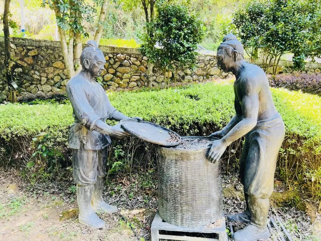 “三月择茶三月三,身穿蓝裤漂白衫”,简约动听的方言茶歌,伴着清澈透亮的桂花溪水,一路轻盈流淌。桂花溪是坦洋村的母亲河,滋养万物生灵。溪水如镜,可见小小游鱼。溪两岸桂子飘香,糅合沁脾茶香,萦绕着村巷,俨然一处世外桃源。一盏清茶,一溪清水,一程夯实山路。红茶的故事掉进清波,旖旎成粼粼波光,阳光下闪烁着隽永悠长。徜徉于溪边树荫,听茶歌来回荡漾,眼前渐渐浮现茶的前世今生。恍惚间握住一位长者的手,时空切换,日月倒转,穿越到了那些烘焙韶光。十指黝黑,脸颊挂汗,襟褂沾尘。扬起落下的茶叶,在空气中翩然起舞,旋即超然凝练。情景如此真切,历史与现实并驾齐驱,胶片般一帧复一帧。茶叶慢慢发酵,茶香渗透土地山峦,从此生根发芽,生长出一茬又一茬新枝嫩叶。红茶的故事一辑又一辑传承,像一本永远写不完的书,情节迂回婉转,灵魂始终挚笃。桂花溪好似痴情的恋人,默默呵护着这个静谧的村庄,村庄里蕴藏的飘香茶韵。
