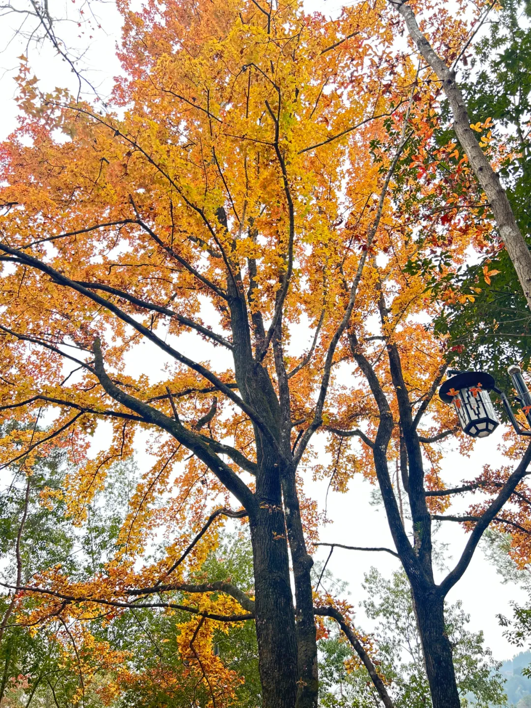 这里古树参天,枫林如画,围炉煮茶、烧烤、户外KTV,一应俱全(食材需自带哦)。当风吹过,枫叶如火,美不胜收。????????