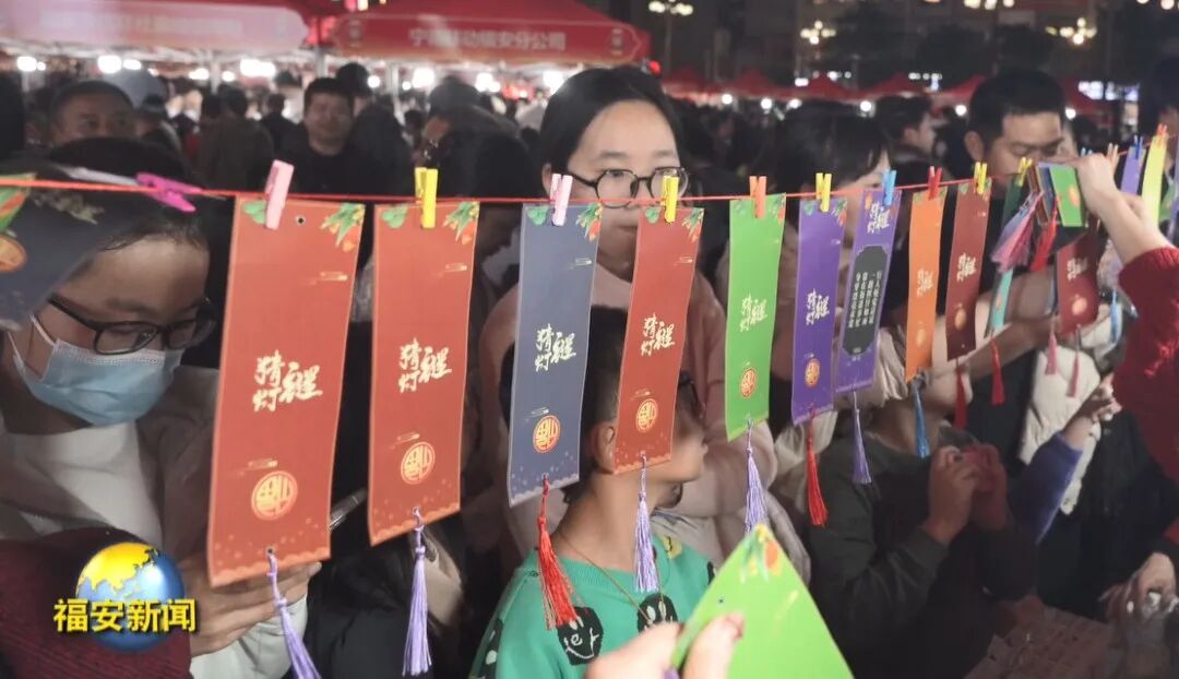 灯谜游园会在热烈欢腾的鼓舞《鼓动乾坤·启福运》中拉开序幕,广场上,一盏盏红灯高高悬挂,一张张谜条随风摇曳,内容涵盖传统民俗、科普知识等,更精心融入赛岐水运文化、福安茶文化、廉文化等本土元素,让灯谜竞猜活动更具烟火气和亲切感。广场中央的擂台上,3道谜王题吸引了各路猜谜高手踊跃挑战,现场掀起一阵阵“头脑风暴”,欢声笑语不断。