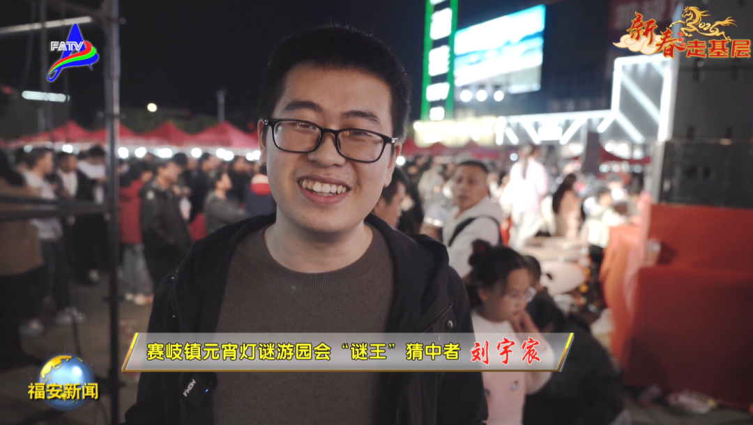 赛岐镇元宵灯谜游园会“谜王”猜中者 刘宇宸:赛岐镇举办元宵灯谜会,让我们有这么好的氛围来参加活动,我们的生活是越来越好,我们的传统文化也应该随着我们的生活蒸蒸日上,在我们的生活中不断地传承下去。