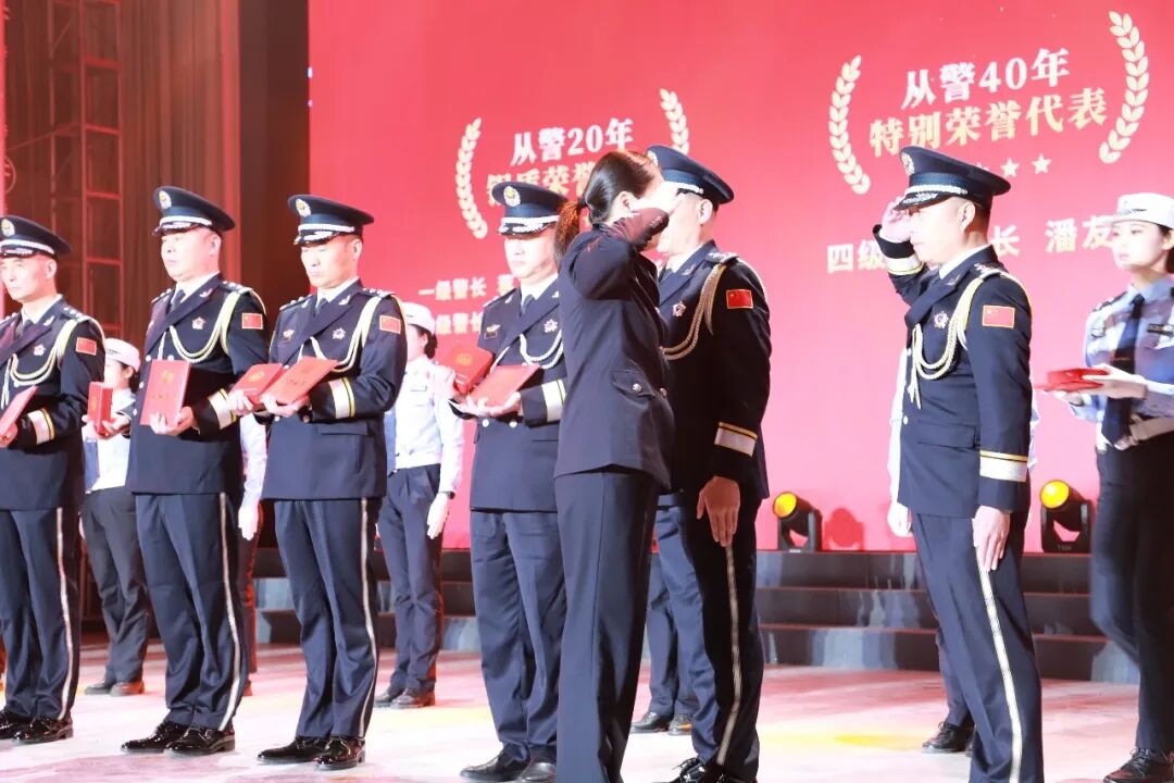 其中,唱跳《Drive Safely安全驾驶》、小品《“大神”遇“大神”》聚焦公安工作的现代化发展与智慧治理。情景剧《风雨彩虹》真实再现一线民警在应急处突、服务人民中的感人瞬间。在庄重的从警荣誉奖章颁发仪式后,《我们都在这里》将整场演出推向高潮,展现了基层派出所民警的坚守与温情。