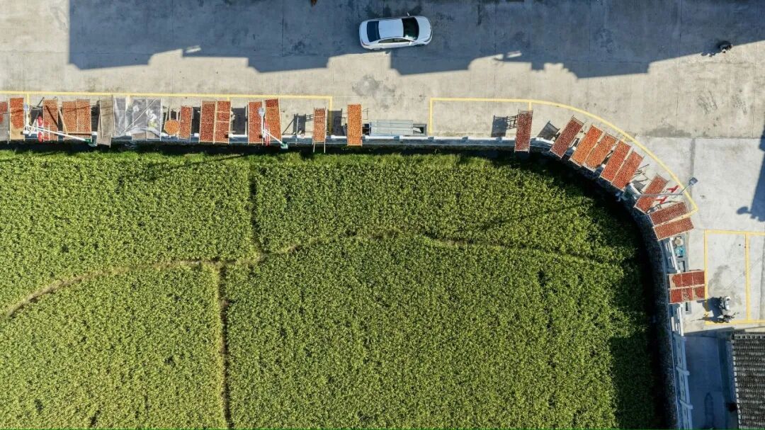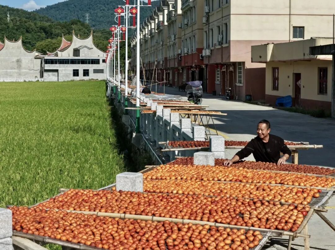 金风送爽秋意浓。这些天,在我市康厝畲族乡梧溪村,连片的柿子树,枝头密密匝匝点亮一盏盏小灯笼。村民们正忙着采摘成熟的柿果,洗净后去皮,摊铺在房前屋后进行晾晒,满目的赤红橙黄,晕染出乡间最美的丰收图景。