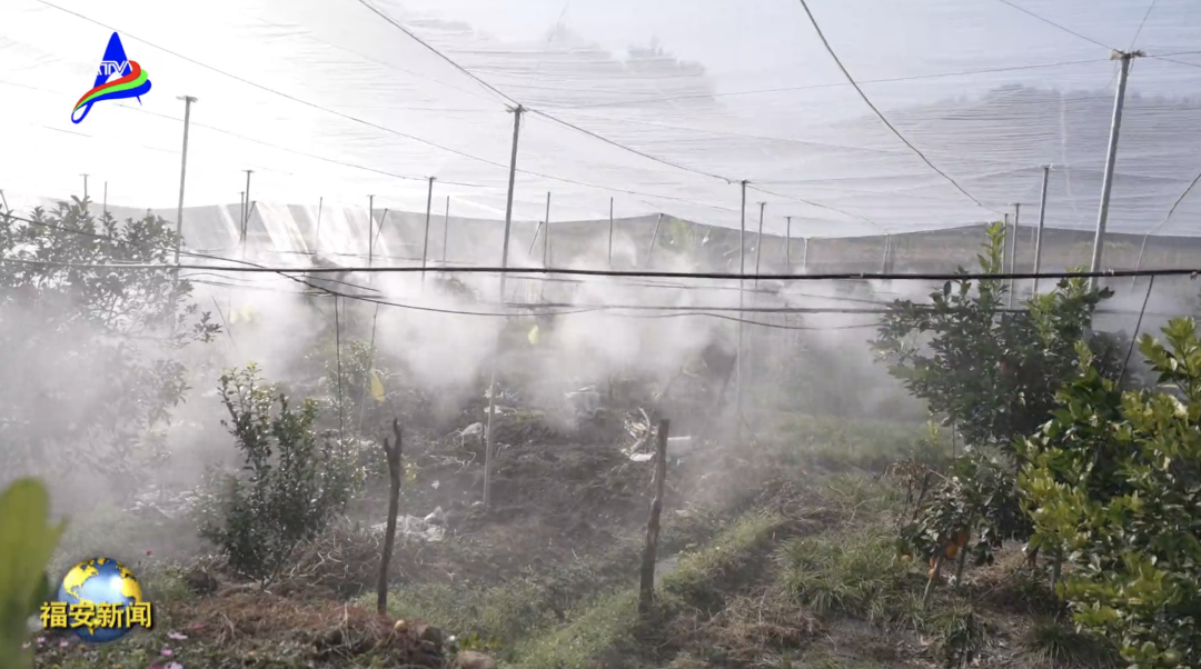 福安市助农农业科技有限公司总经理 林凯:迷雾系统,它是可以通过高压的整个管道,将整个水分以雾的形式传递到果园,让整个叶面更均匀的吸收到。以我们20亩的果园来讲,在没有装之前,大概是需要四个人,两天左右的时间,才能喷完整个叶面肥,但现在装完了以后,我们大概只要一个小时,一个工人就可以操作完了。防虫网就等于给植物安了一个家,它可以阻止外面的病虫害,传播到我们的果园里面来。