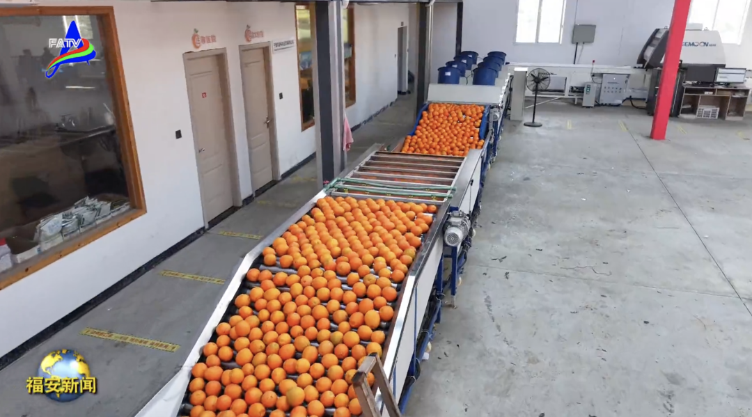 刚从树上摘下的脐橙被送到村里的智能分拣中心,这里拥有全自动化的清洗和分拣流水线。脐橙进入流水线后回滚动、清洗抛光,色泽更加透亮。随后被送上分拣传送带上,通过光谱测糖和瑕疵扫描机,不同大小和甜度的脐橙自动分拣、分级,并打包好准备发车。据介绍,这条流水线每天能够处理3吨左右的脐橙。