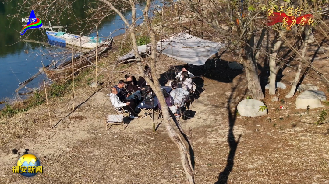 隆冬时节,暖阳笼罩下的上白石镇白石坂村,田垄织锦,林丘叠翠,交溪碧水倒映着蓝天白云,景观如诗如画。游客们三三两两悠然小坐,于山水间品味闲适时光。