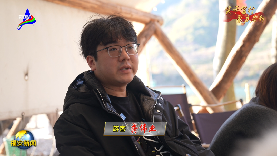 游客 龚伟业:这边环境挺好的,有山有水,每次和家人一起过来放松下,吃吃东西,聊聊天,放慢生活,比较惬意。