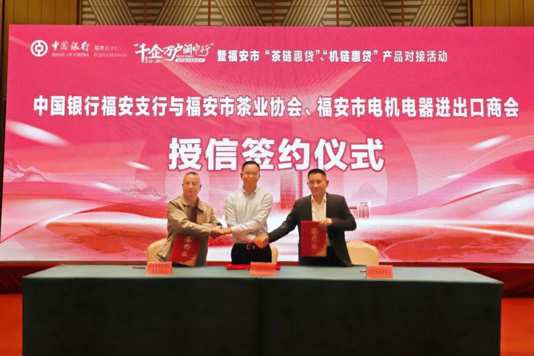活动还举行了茶叶协会、机电协会与中国银行福安支行授信签约仪式,中国银行围绕普惠金融产品、企业家办公室产品进行宣讲。