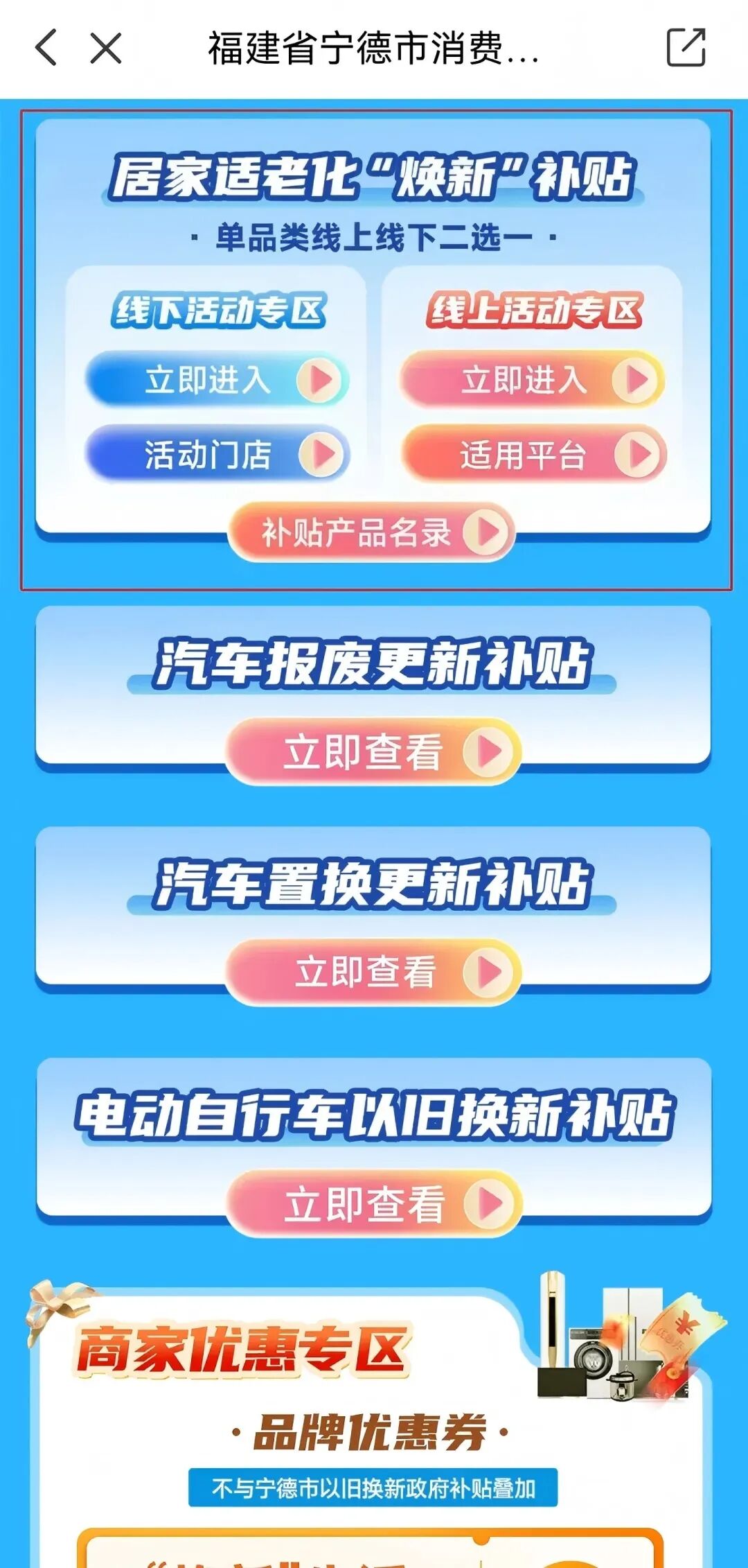 目前,宁德市已广泛开展2025年适老化改造“焕新”补贴活动。