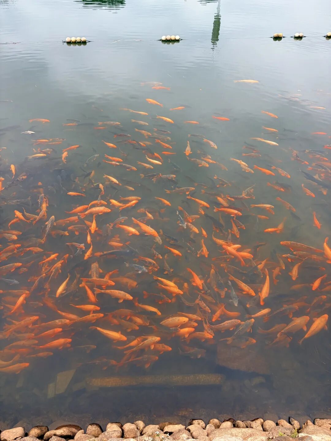 买一包鱼食,看红鲤争食,