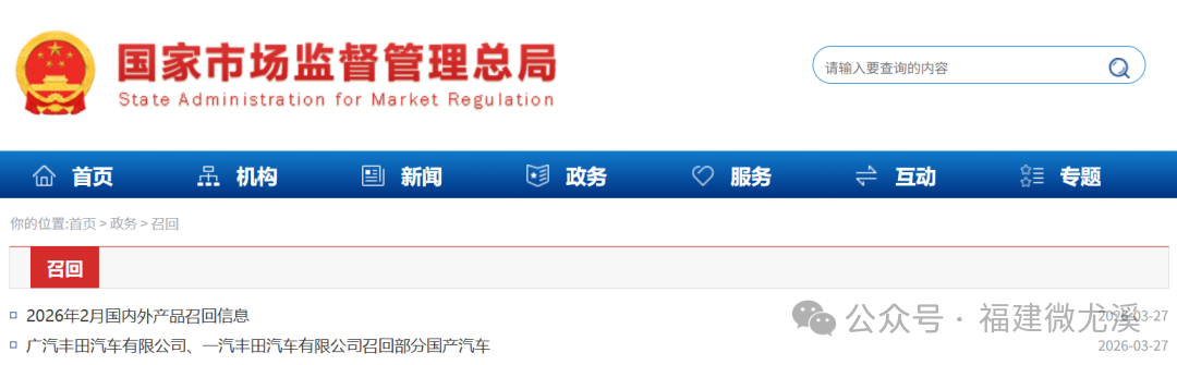 发布最新召回信息