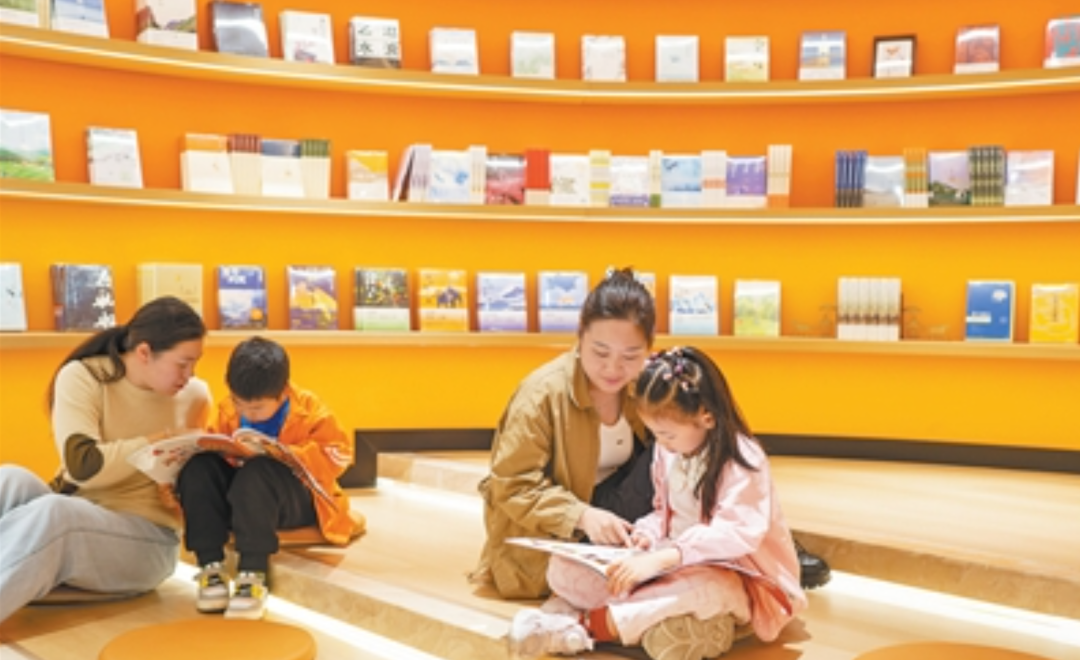 湖北省秭归县一家书店,家长陪同孩子阅读书籍。雷勇 摄(新华社发)