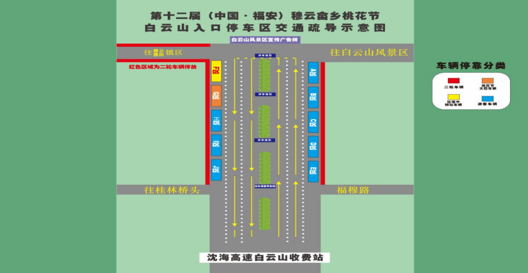 沈海高速—福安湾坞枢纽—宁武高速—白云山互通口—桃花节。
