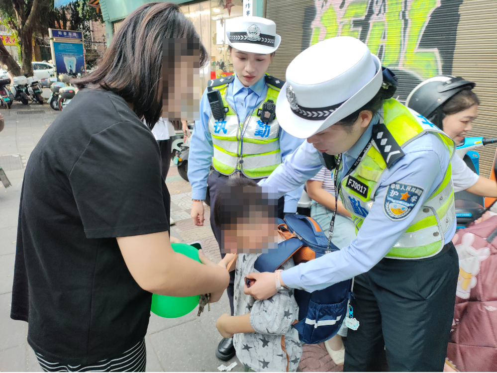 将校园周边交通设施检查纳入日常巡逻重点,及时对模糊褪色、破损的交通标志标线、交通设施等进行登记维护、更新,不断优化通行环境,从硬件基础上补齐安全短板,全面提升校园周边道路的安全保障水平。民警辅警在护学值守中,主动关注学生突发需求:遇学生物品丢失,帮忙排查寻找;发现学生迷路、受伤、突发疾病等,耐心安抚并第一时间联系家长或学校,用细致服务解决师生所急,让“护蕊行动”既有安全守护,更有温度关怀。
