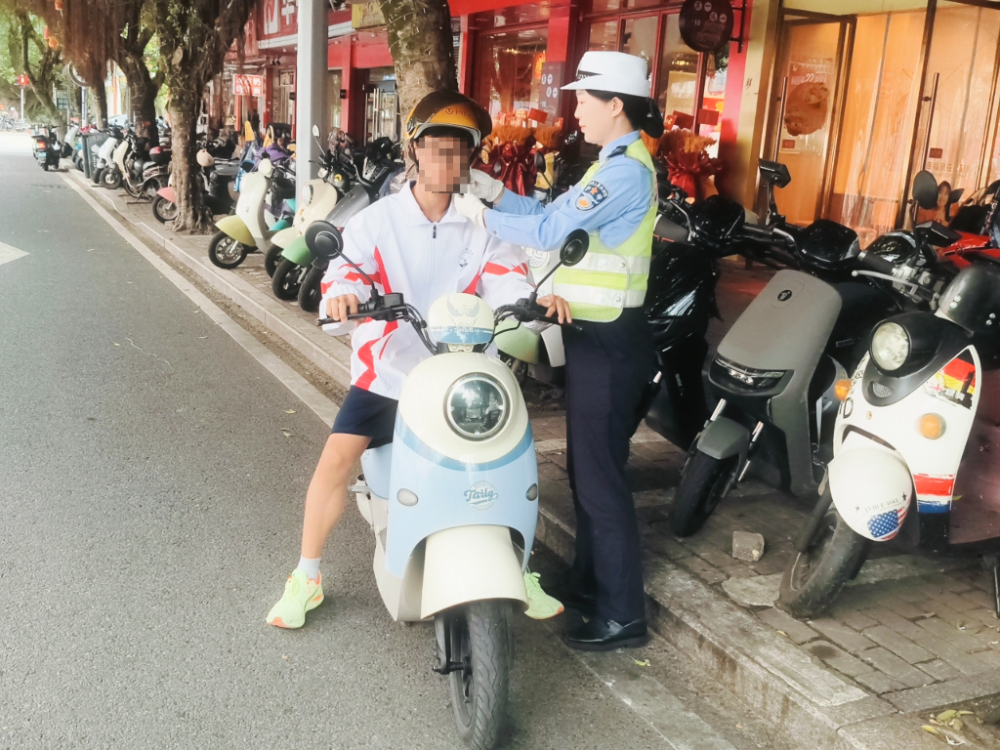 加大校园周边路段巡逻频次与密度,针对学生骑行电动车未佩戴头盔、违停等违法行为,坚持柔性执法理念,现场开展交通安全教育;对未成年学生无证驾驶、驾驶非法改装车辆“飙车炸街”、闯红灯、逆行、超员等严重行为,第一时间联系监护人与学校,督促落实监督责任,引导学生及家长自觉树立交通安全意识。