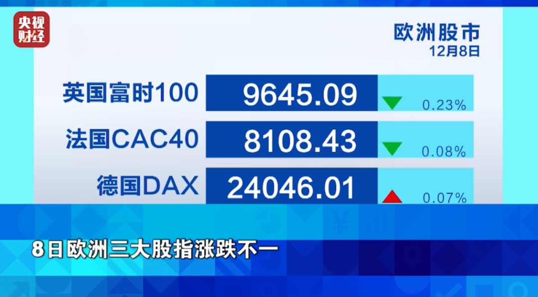 欧洲方面,欧洲央行官员周一的“鹰派”言论,令交易员关注欧洲央行明年重启加息的可能,欧元区多国国债收益率上行,打压市场风险偏好,欧洲三大股指当天涨跌不一。截至收盘,英国股市跌0.23%,法国股市微跌0.08%,德国股市微涨0.07%。