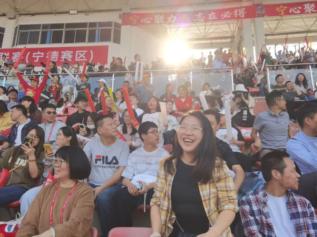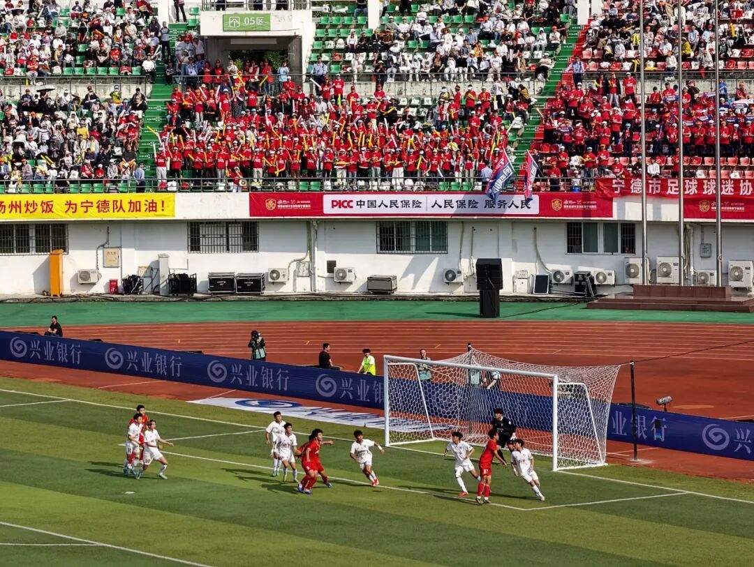 全场赛事氛围热烈高涨,宁德主场球迷热情澎湃、气势如虹。看台上众人高举战旗、齐声助威,巨幅宁德球队球衣与主题海报在人潮中缓缓舒展、轮番呈现,阵阵嘹亮不息的呐喊助威声,全程为球队保驾护航,成为队员们奋勇拼搏的坚实底气与最强后盾。