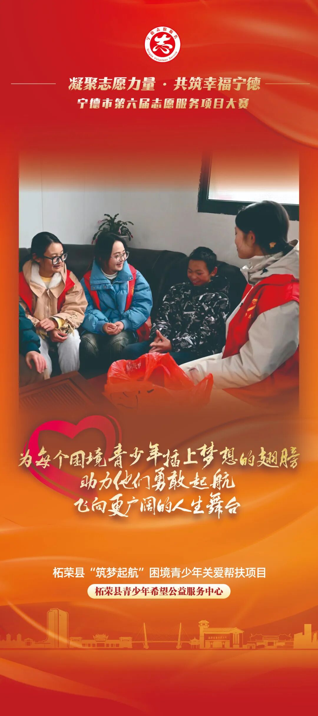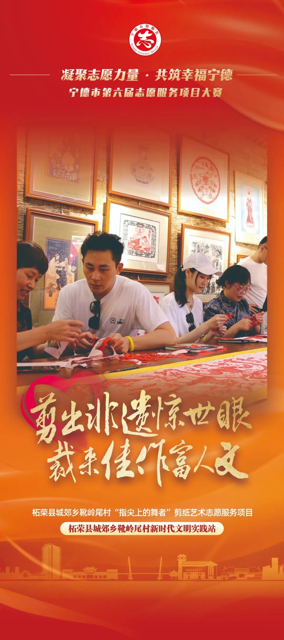 近日,由中共宁德市委社会工作部、中共宁德市委宣传部(文明办)、共青团宁德市委、宁德市妇女联合会、宁德市科学技术协会联合主办,中共福安市委社会工作部承办的“凝聚志愿力量 共筑幸福宁德”宁德市第六届志愿服务项目大赛即将开赛!值此决赛开启之际,大赛组委会陆续对40个入围决赛志愿服务项目进行宣传展播。本期,我们展播的是“幸福4邻”文明社风建设志愿服务、柘荣县城郊乡靴岭尾村“指尖上的舞者”剪纸艺术志愿服务项目、福宁生命守护·志愿“救”有力量、“智造未来”青少年动手实践科技梦志愿服务项目、柘荣县“筑梦起航”困境青少年关爱帮扶项目。