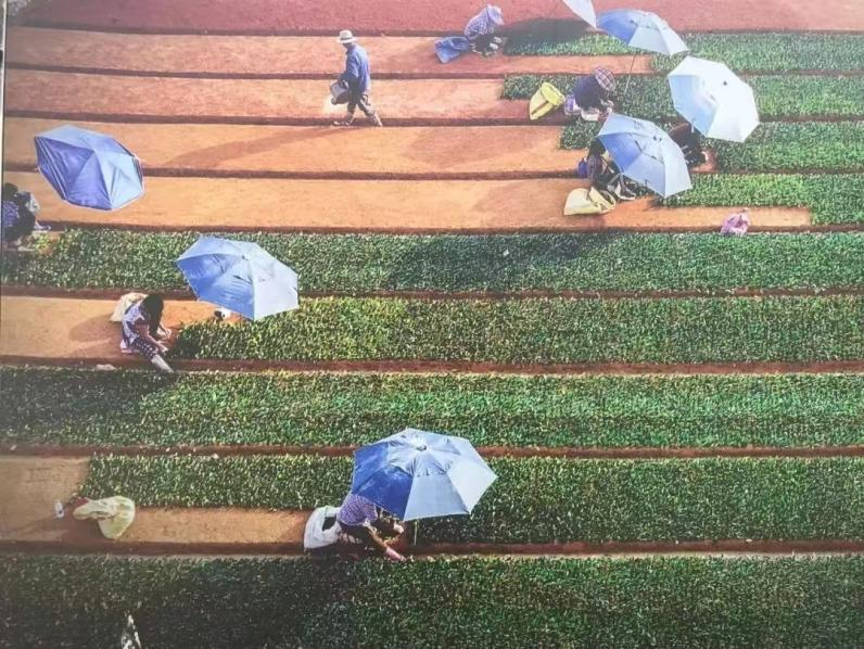 在观里探索“党建+基地+合作社+农户”的发展模式,建立“一村一品”新格局,打造茶苗繁育专业村。280余亩的茶苗基地年产茶苗超1亿株,畅销全国。从航拍图中可见,茶苗基地色彩斑斓、阡陌纵横,宛如大地的艺术织锦;国家区域性良种繁育基地的设施完备,茶农们在田间劳作的身影,更是绘就了一幅产业兴旺的乡村振兴画卷。