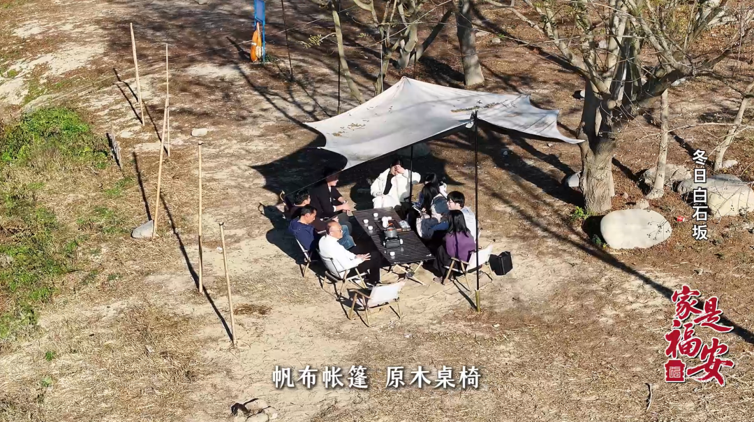当午后阳光变得慵懒,移步河岸边的开阔地,那是一片由大地色系勾勒出的闲适场景。帆布帐篷、原木桌椅,共同调和出一种温暖而沉稳的基调。人们在这里,或围炉闲谈,或烧烤放松,没有匆忙,只有一份把自己交付给阳光的闲适。