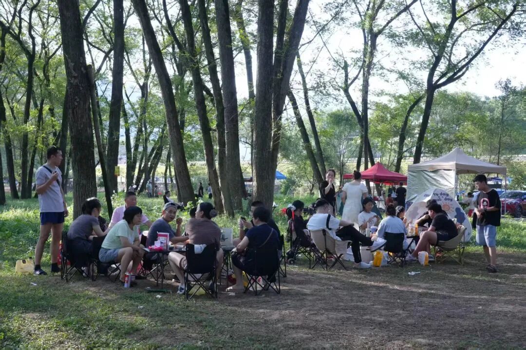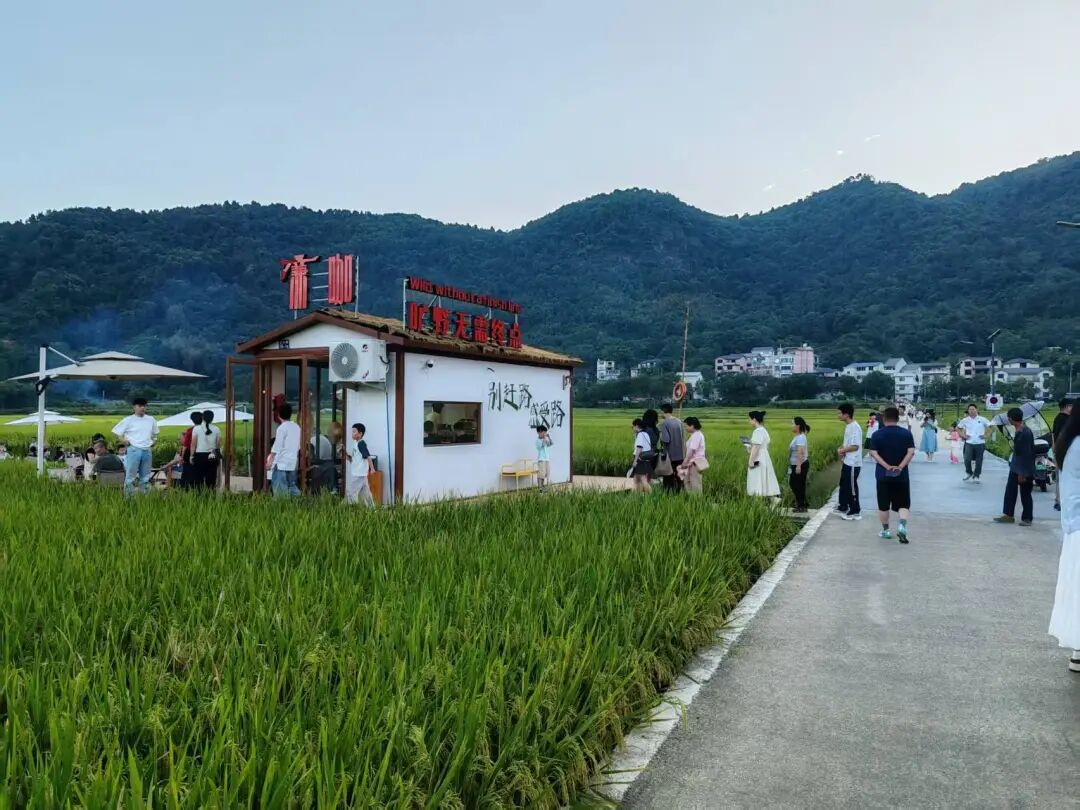 上湾村的露营基地和上湾咖啡,成为年轻人假期放松的热门选择,现场人流如织。