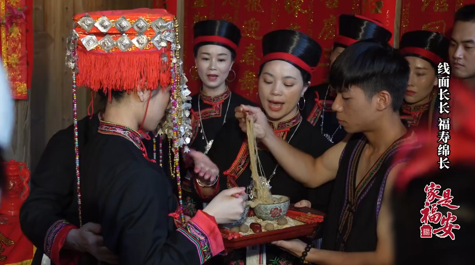 穆阳线面中,还藏着独特的民俗密码,成品不切断,收成约六十公分称为“只”,再用红丝线扎起头部,就成了寓意吉祥的“红头线面”,是福安人心中最美的“红彩头”。