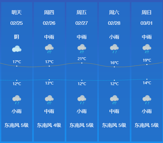 未来一周全省多阴雨天气
