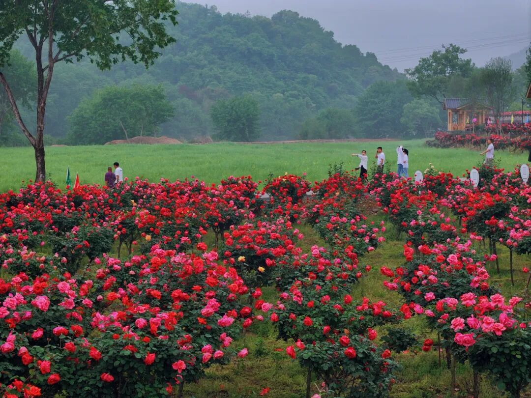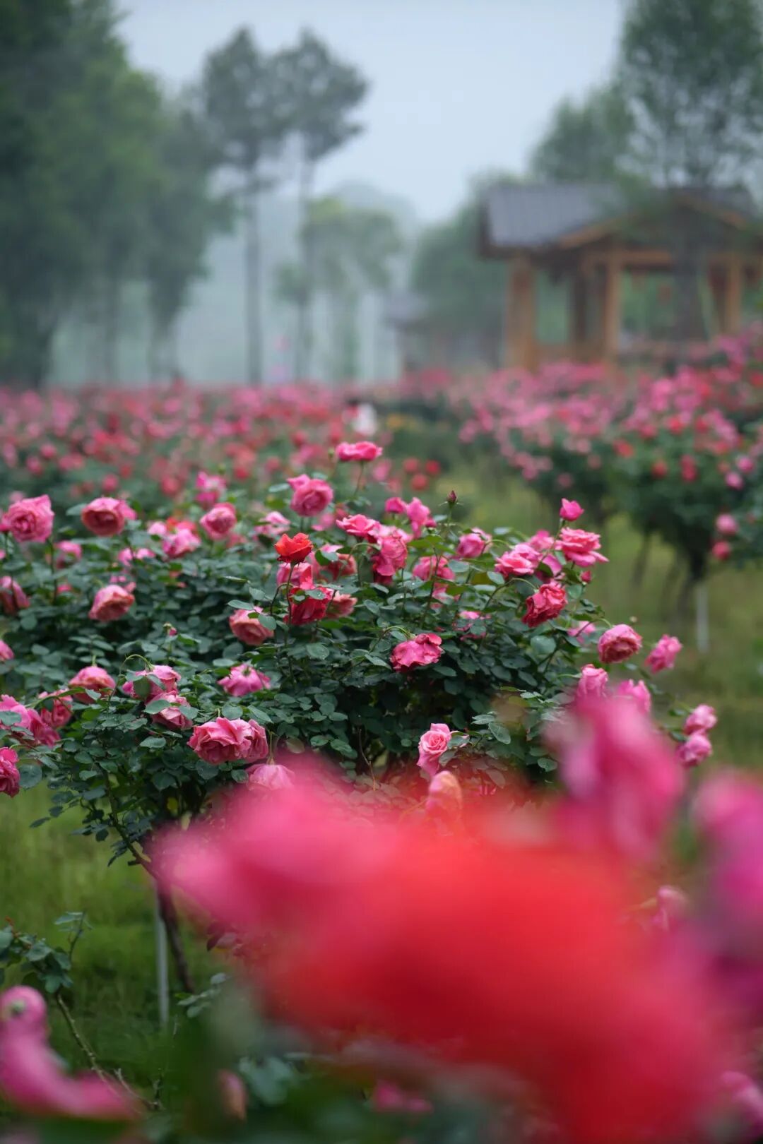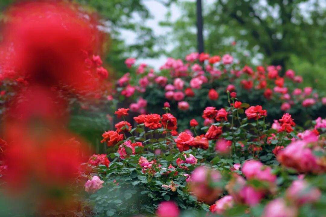 种满了丰花月季、藤本月季等各类玫瑰品种