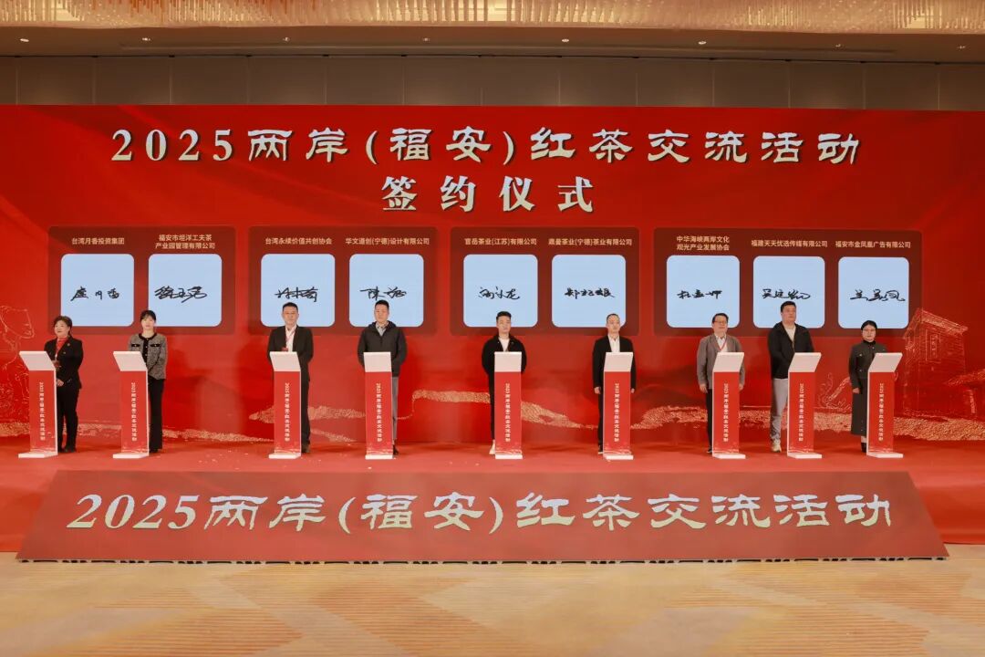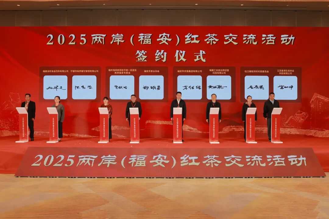 活动现场,《福安茶志》正式发布;世界茶联合会终身名誉主席、茶界泰斗张天福夫人张晓红赠送张老墨宝。“全家福安”“福安红”“坦洋红”三款新品红茶同步亮相,展现了福安红茶的创新活力。现场还为第二十届“坦洋工夫杯”北京斗茶赛获奖茶企颁奖;签约仪式上,生态低碳茶品牌打造、供销合作、战略合作等两岸合作项目签约,为茶产业融合发展注入强劲动能。