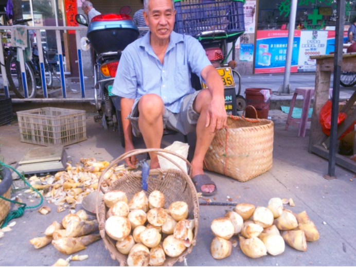 当仲夏的晨雾还未散尽,新阳路已飘荡着山野的气息,菜农们挽着竹篮土箕,将沾满晨露的绿笋沿街铺展。这些来自洋边、六岔路、王基岭、老蛇岗的笋农们,总能在早市掀起一阵绿色的浪潮,水灵灵的竹笋褪去黄绿笋衣,露出凝脂般的玉色肌理,须臾间便告售罄,只余竹篮底零落的笋壳,见证着这场晨间的味觉盛宴。