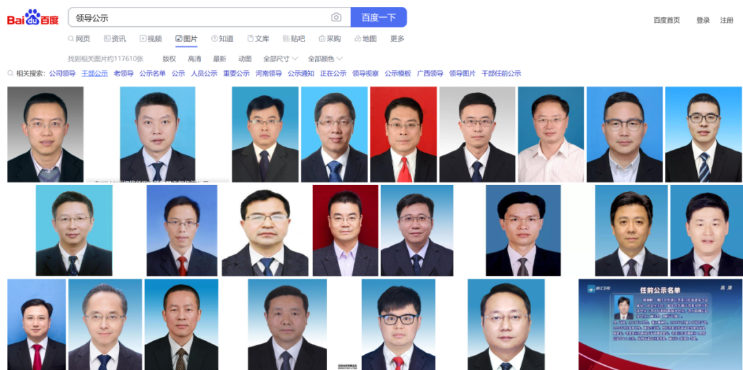 至于你说领导干部的个人基本情况、照片和信息就这么好找吗?事实上,确实很好找。(只要在百度上搜索“领导公示”,马上就可以看到很多标准的证件照,而点开每个证件照,都有这个领导的基本信息。)