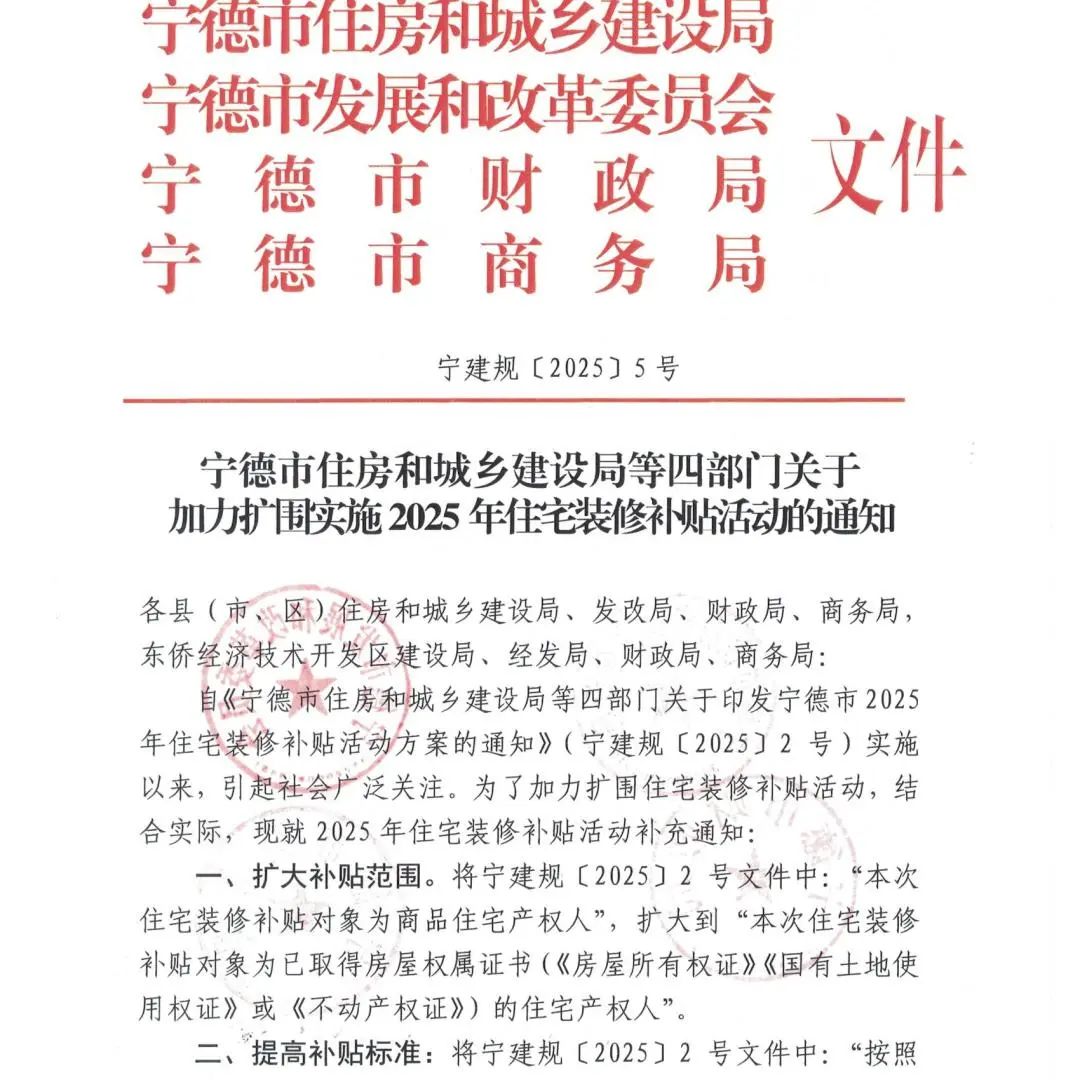自《宁德市2025年住宅装修补贴活动方案》出台后,