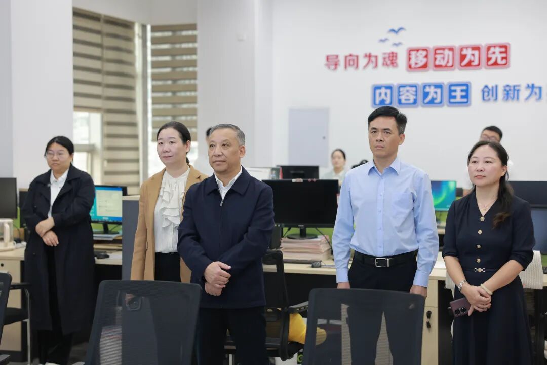 周祥祺一行走进新闻采编大厅、节目制作机房,与采编人员深入交流,详细询问媒体融合发展、平台运营管理、人才队伍建设等工作情况。他指出,中心始终秉持“导向为魂、移动为先、内容为王、创新为要”的理念,深入基层宣传党的主张、反映群众呼声,为地方高质量发展凝聚了正能量。