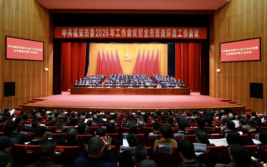 2月25日,中共福安市委2026年工作会议暨全市营商环境工作会议召开。会议深入学习贯彻党的二十届四中全会精神和习近平总书记在福建考察时的重要讲话精神,认真贯彻落实党中央和省委、宁德市委部署要求,扎实开展树立和践行正确政绩观学习教育,深入开展“三争”行动,围绕“开局起势、实绩检验”年度主题和开展经济建设“三个年”及干部作风建设年活动,团结动员全市广大党员干部群众,以策马扬鞭的豪情、一马当先的锐气、龙马精神的状态,进一步优化营商环境,奋勇争先、再上台阶,奋力谱写中国式现代化福安实践新篇章,为“十五五”良好开局打牢坚实基础。市委书记黄其山,市委副书记、市政府市长许春林,市人大常委会主任詹廷平,市政协主席林志生参加。
