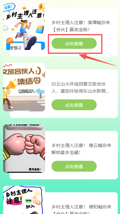 点击首页“乡村合伙人招募”进入栏目板块。这里为你展示福安各个乡镇优质特产和资源,无论是你是技术大牛还是营销高手,这里都能找到你的“梦中情队友”,一起组队智汇农创,让创意落地生根!